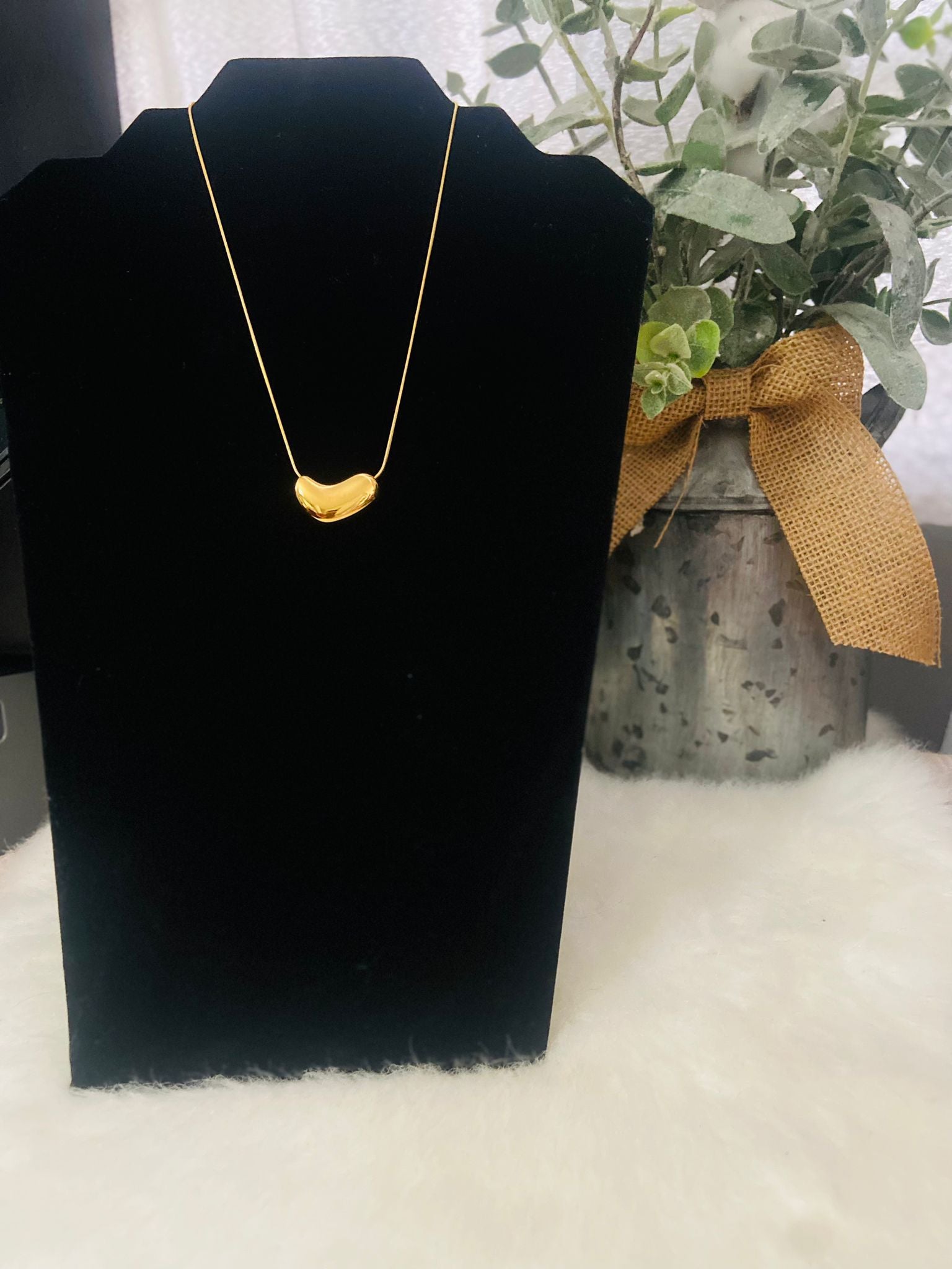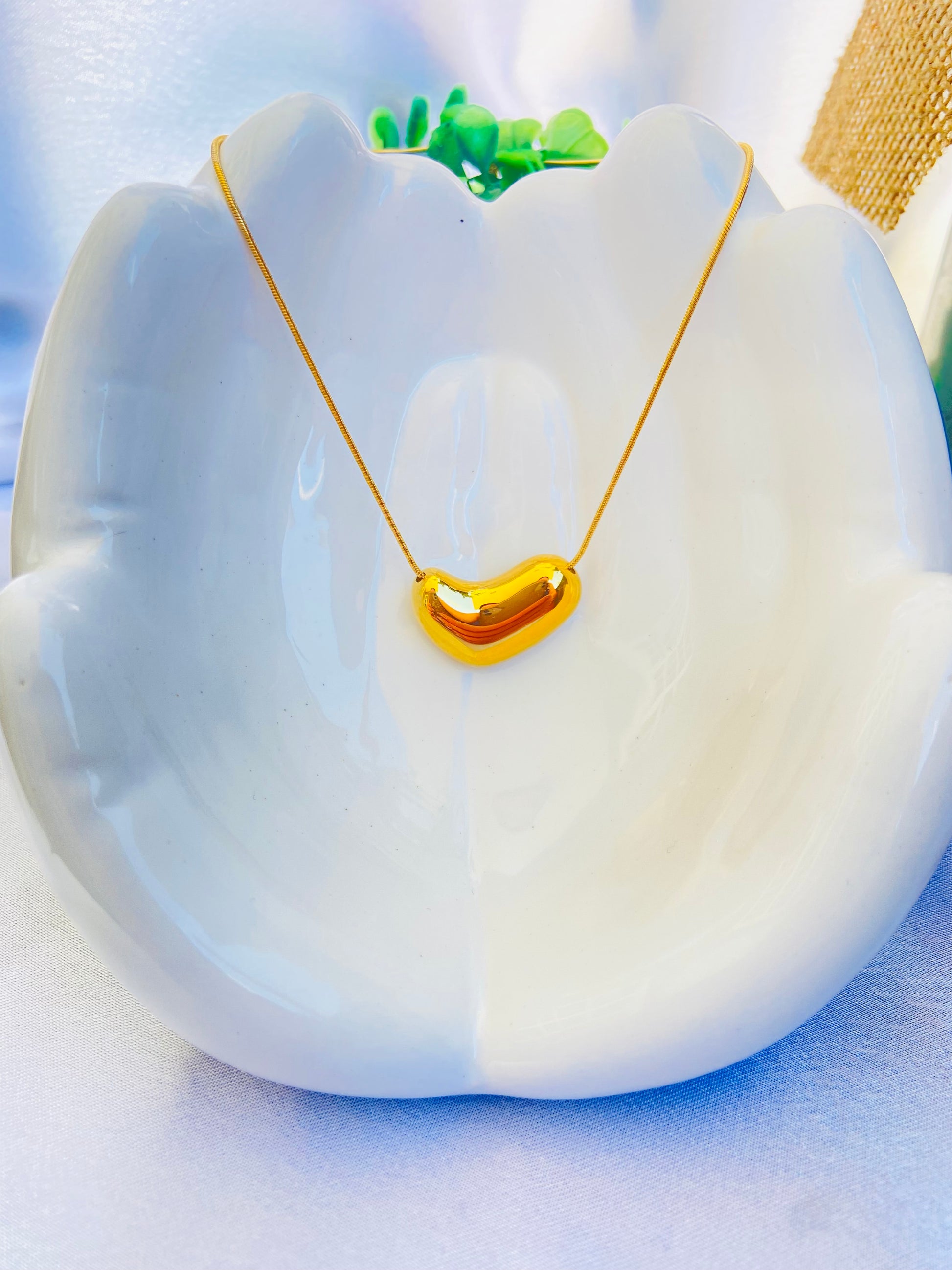 Modern heart pendant necklace in 18K gold plated stainless steel.